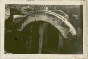 Comprises a full-length photograph of a woman standing outside holding wool [she had been spinning].