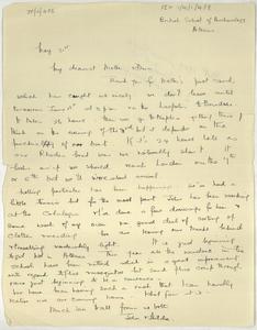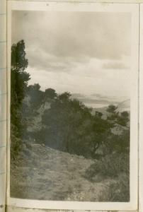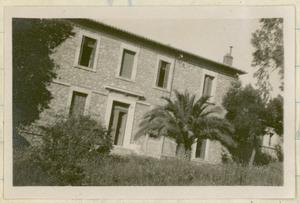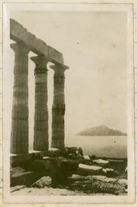 A young man sitting at a table with a drink [guide for visiting the Amphiareion]. The group included John Pendlebury, Hilda White and Professor William Dudley Woodhead.