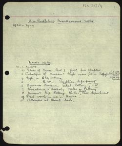 Comprises notes about Andros, and made from ‘Palace of Minos’ by Arthur Evans. The first page of notes also lists notes on other topics, but these are not present. The notes reference books and articles.