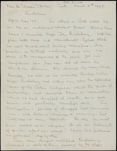 John and Hilda Pendlebury joined the cruise (which was hosted by Mrs Emmett, wife of the American Naval attaché at Hague) at the invitation of Charles and Isabel Seltman. The manuscript includes descriptions of Keos [Kéa], Tenos [Tínos], Mykonos [Míkonos], Delos [Dhílos], Samos [Sámos], Chios, Mitylene [Lésvos], Paros [Páros] and Melos [Mílos].