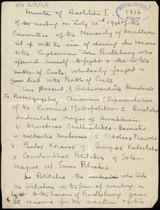 Committee “set up with the aim of showing due honour to the Englishman John Pendlebury”. A plan to erect a bust of John Pendlebury in the garden of the Herakleion museum is recorded in the minutes.
