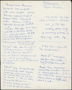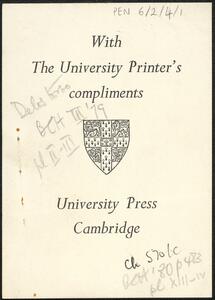 Includes notes of a reference about the Delos Torso from the BCH [Bulletin de correspondence Hellenique] on a Cambridge University Press compliments slip.