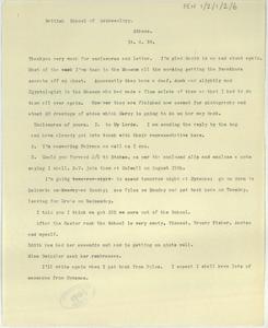 Thanking Hilda for a letter, newspaper clippings and notes; sending a report on “Stubbing’s treatise”, a job application “for Minn’s job” [Disney Professorship of Archaeology at the University of Cambridge] and a letter to the Master of Emmanuel [College, Cambridge], asking Hilda to get these items typed and sent; saying “Old Will” had asked after her and that John was going to see the Hills and Blegens [Carl], and that he hoped to go to Kimolos [Kímolos] and Melos [Mílos] with [Gerard Mackworth] Young [Director, British School at Athens].