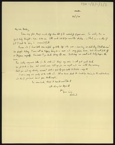 Telling Hilda he had been on a trip and that’s why he hadn’t sent a telegram, and asking her to tell Mercy [Money-Coutts] “about thirty if allowed” [?].