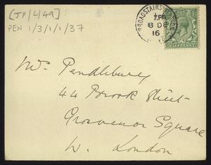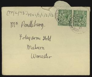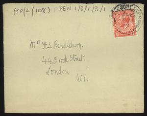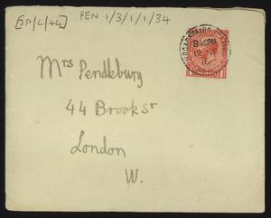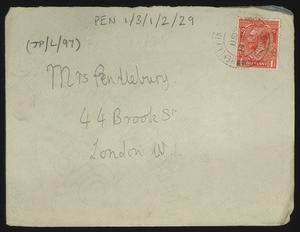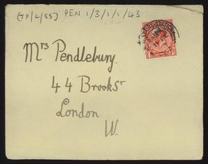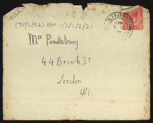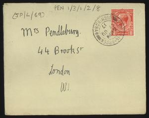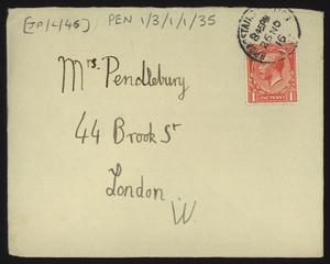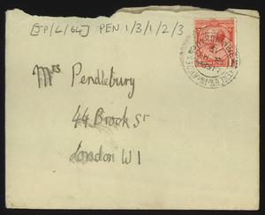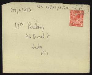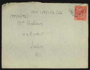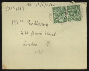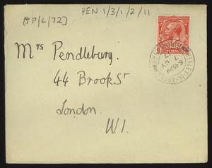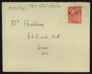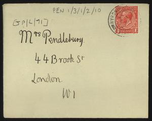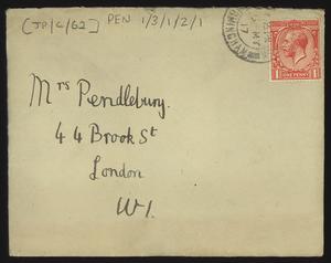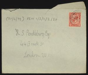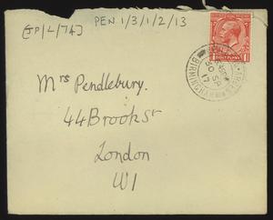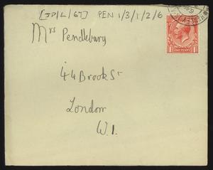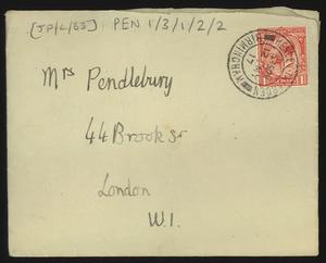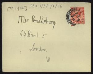 Sent from Knossos. Mainly telling Herbert about a letter from [Gerald Avery] Wainwright responding to John’s article on [‘Egypt and the Aegean in the Late Bronze Age’], and John’s letter of reply to Wainwright. Also discussing finishing work and packing up at Knossos, the weather, that he was glad that Robin [Mabel Dickinson’s son] was better and hoped “Dickie is behaving”. The reverse of the letter is annotated “Crete 1930” in a different hand.