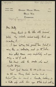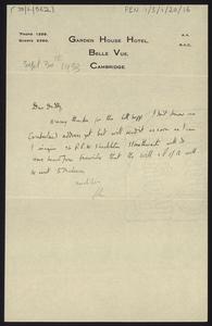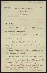 Written from Beaudesert Park, Henley-in-Arden. Sent to the Foley Arms Hotel, Malvern. Telling Lilian about new boys at the school and a new teacher, a teacher who was still there and other boys still to return, about the garden and that he had got a photograph of the school. Asking if she had heard from [Herbert Pendlebury], whether anyone new had arrived and whether there was “anyone there who arranged their hair in the garden”.