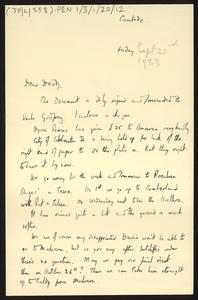 Written from Beaudesert Park, Henley-in-Arden. About his examinations [for Winchester College], the weather, playing golf, going for a picnic, and a starling nest. John also asks if Goodman [his friend from the school] could visit in the holidays after they had been to Bradford, and reminds [Herbert] about buying him a bat. Includes drawings of Theseus killing the Minotaur and Hannibal drinking poison.