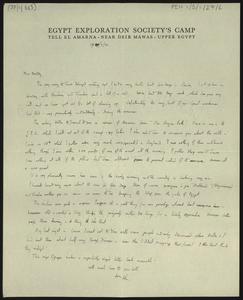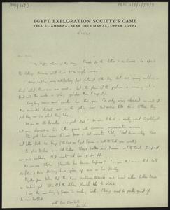 Sent from “Egypt Exploration Society’s Camp, Tell el Amarna, Near Deir Mawas, Upper Egypt” [Amarna].