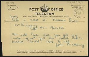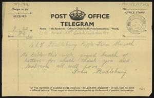 Written from St George’s School, Broadstairs, Kent. Comprises a letter started on Saturday evening, and finished on Sunday. Telling Lilian that they went to the “dug out” on the previous Sunday and heard guns and the [Air Raid Siren]. John also tells Lilian about building armoured cars and Tubby and Gerald having a disagreement, seeing [photographic] slides of Portugal, that Basil was ill and asking Lilian for bible markers [for Basil]. Also sending love to Nanny and hoping she will be better soon, and asking after “Dicky and the love birds”.