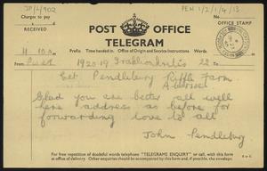 Written from St George’s School, Broadstairs, Kent. Saying that he was sorry to hear of Granny’s death and that he would send a wreath. Also telling Lilian that they had been tobogganing, he had hit Douglas, and that stamp collecting was becoming popular at the school. John asked Lilian to send him some stamps and whether she would be visiting or that was an “extravagance in war time”.