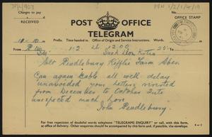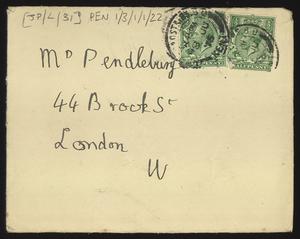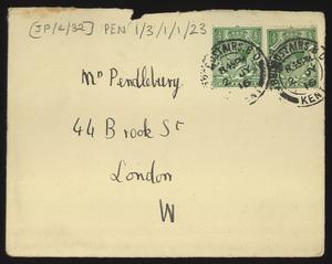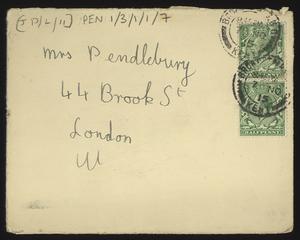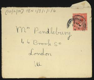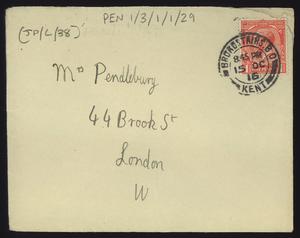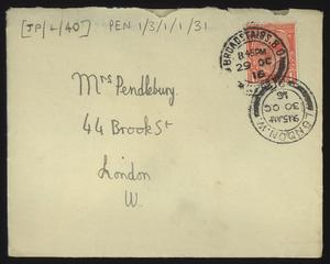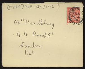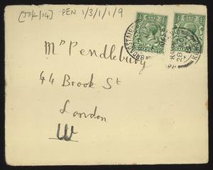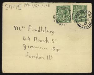 Written from St George’s School, Broadstairs, Kent. Telling Lilian that his Meccano had arrived and they were making armoured trains, and that it was very windy and the patrol boats were struggling because of the waves; asking for her to send his “75” [air rifle], more nuts and bolts, and his stamp tweezers and magnifying glass to detect forgeries; and asking after the birds and for her to “give Daddy a thick ear” and tell [Herbert Pendlebury] that Winchester scholarship papers had arrived.