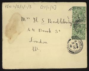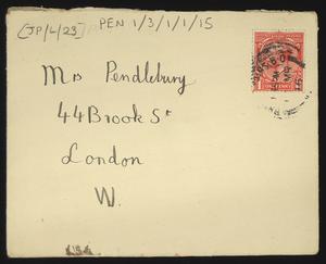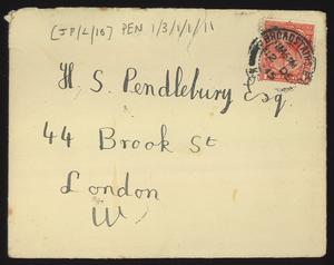 Sent from Knossos. Telling Herbert about a lunch they hosted for “The Hellenic Travellers” including [Arthur] Evans’ stepmother, Anthony Hope, Gilbert Murray, H. A. L. Fisher, [B. H.] Liddell Hart, Ernest Gardner, Ronald Knox, [Alfred Cort] Haddon of Christ’s [College, Cambridge], [William David] Ross of Oriel [College, Oxford], McElroy and Saleeby (“the health expert”); and that they had also had a visit from 100 Polish people from Warsaw. Additionally thanking Herbert for a copy of ‘Punch’ and “Ur and Budge”, and mentioning that he had written to congratulation Dickie and Robin [Mabel Dickson and her son].