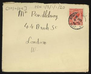 Written from the British School at Athens, wishing Herbert a happy Christmas and New Year and a belated happy birthday. Telling him about a visit to Siphnos with [Hilda] and [Humfry] Payne to look at sites for possible excavations; stating that they may spend Christmas in Icaria [Ikaría] and Keos [Kéa] as Payne wanted to visit possible excavation sites there; and asking him to pass on information about Crete to Mr [Dyson] Perrins [for a planned visit]. Also mentioning: they were sending 2 books for Christmas; thanking Herbert for a book and stating he had not received “the Gardiner, Green” and photos; thanking Herbert for writing to [Cambridge University Press] and stating he had no acknowledgement for proofs he had sent; he had not heard from [Stephen] Glanville about an article on Egypt and the Aegean; and asking Herbert to get ‘Great Ones of Ancient Egypt’ by [Winifred] Brunton. Additionally mentioning that he had heard from Hans [Frankfort] who was on his way to Iraq [Tell Asmar] to excavate, and thanking Herbert for writing about a Pothouse fellowship [?] which was not suitable.