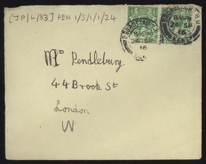 Written from St George’s School, Broadstairs, Kent. Apologising for not writing sooner, and answering that he wanted “one with no tunnel at all if not one with two”. [It is not clear what he is referring to here].