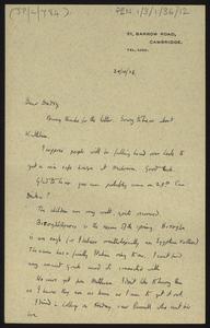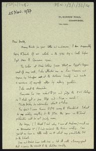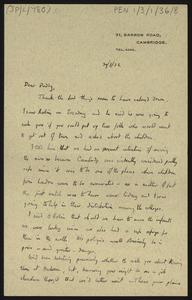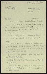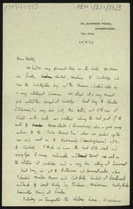 Letter to “Daddy” [Herbert Pendlebury] from John [Pendlebury]