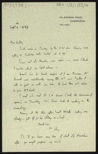 [PEN/1/3/1/34/7], Letter to “Daddy” [Herbert Pendlebury] from John [Pendlebury], Wednesday, March 30, 1938
