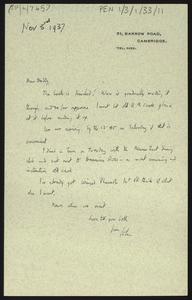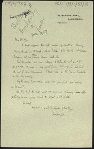[PEN/1/3/1/34/1], Letter to “Daddy” [Herbert Pendlebury] from John [Pendlebury], [22 Jan 1938]