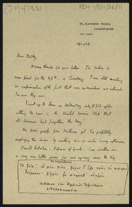 [PEN/1/3/1/34/5], Letter to “Daddy” [Herbert Pendlebury] from John [Pendlebury], [16 Mar 1938]