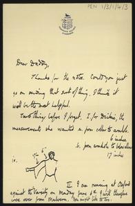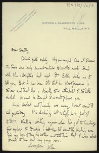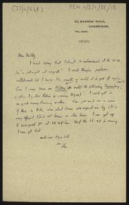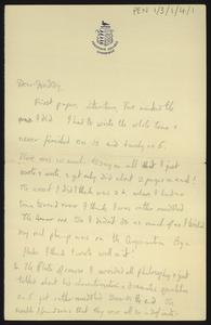 Sent from Hawks Club, Cambridge. Telling Herbert about his viva which he thought had gone well but was short; about his bad performance in the high jump the previous day, that London had done very well and John would see him again in the Southern [Championships], and that Lewden would also be in the AAA [Amateur Athletics Championships]; and discussing a wig, chain and sword [for a costume].
