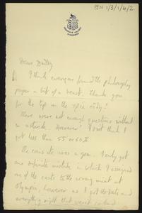 Sent from Pembroke College, Cambridge. Discussing examinations in philosophy, “coins etc”.