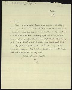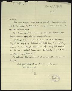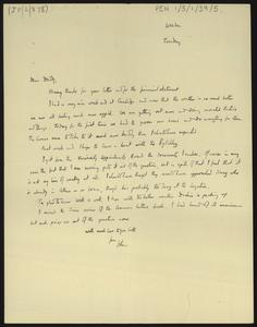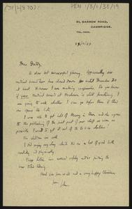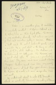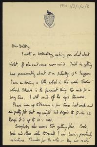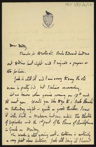 Sent from Pembroke College, Cambridge. Discussing arrangements for Herbert arriving (on Saturday 19th [of Feb]) and asking if Violet would come, also discussing the possibility of Ruth visiting; discussing arrangements for Tom [Livingston-Learmonth] to stay with John and Herbert in Malvern; sending an article in ‘Review’ which he thought was amusing; telling Herbert he would send off eyes tomorrow, that he had been to Fenners’ [sports ground] and was fit but had lost weight, that lots of people including Jock [Lawson] and [Arthur] Cook had flu, that he had refused all school sports that year, would be going to Malvern on the 28 Mar, and that Tom [Livingston-] Learmonth and Jim had had their 21st birthdays the previous week; also thanking Herbert for notes which were very useful.