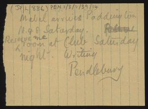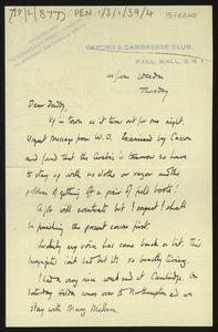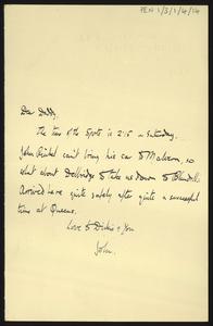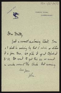 Sent from Hawks Club, Cambridge. Sending tickets and telling Herbert what time he and Tom [Livingston-Learmonth] would be arriving [at Malvern].