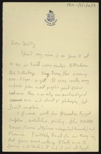 Sent from Hawks Club, Cambridge. Telling Herbert that he had had a good time at the Chamens’, that he had a bust of Akhenaten [that he got from London], and about dates for sporting competitions against other colleges and Varsity trials. Also telling Herbert that he had got reading candles and that Jock Hall had [tripos] papers in stock.