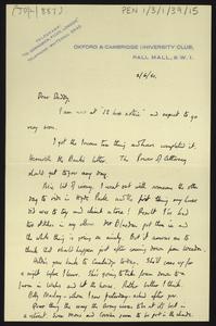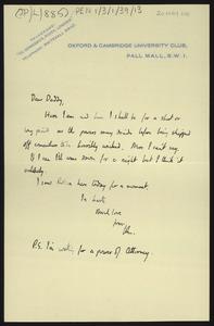 Sent from Oxford and Cambridge Club, London. Telling Herbert about his success at Queens’ [sports club, in the high jump] and that he was going to the [British Museum]. Also passing on news of Dr Bolton, and Uncle Herbert and family, and sending his love to Dickie [Mabel Dickinson] and [Robin Dickinson].