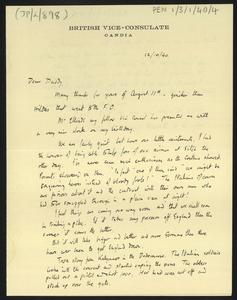 Telling Herbert he would write from Belgrade, that he had bought Robin [Dickinson] a Maygar paper which was remarkable because it was dated for the next day, that he [and Bob Dixon] were “taking plenty of nourishment”, and to tell Dickie [Mabel Dickinson] to be good.