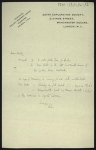 Sent from Hawks Club, Cambridge on “day of saints Philip and James”. Sending Herbert reports of the Varsity sports; saying that he would be going to the Pembroke College ball as Vera was coming in David Walker’s party; discussing his studies with Mr Bicknell [in archaeology] and [Arthur] Cook, and books by Walker (‘Monuments of Athens’) and Andrew Lang (‘Homer and the Epic’); mentioning he had received the catalogue of the Acropolis Museum, and asking Herbert to send him a catalogue of the Museum at Sparta and a copy of the names (in hieroglyphics) of four guardians of jars which intestines were kept in (which would probably be in ‘The Mummy’ by Budge) as John wanted them for a photograph of “The Four Coarse Men”.