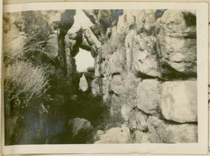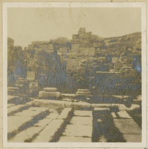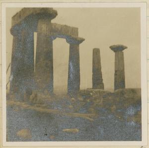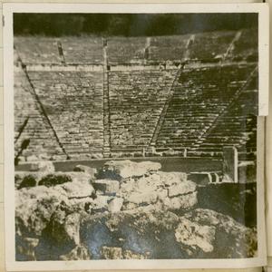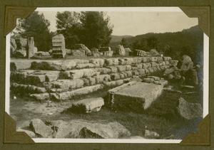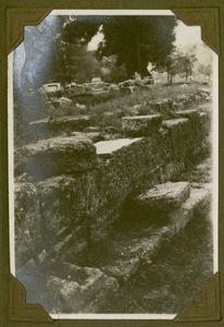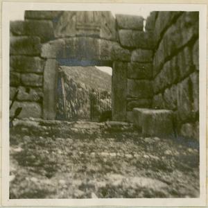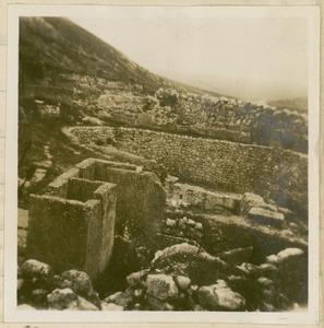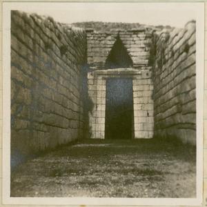 Photograph album compiled by John Pendlebury, containing plans and photographs of Tholos tombs in Mycenae and some other archaeological sites in the Peloponnese, with notes on the sites. Also contains other photographs and plans of Mycenae. The first page has the title of the album written on it as “The Tholos Tombs of Mycenae & elsewhere with The Citadel of Mycenae & its Environs.” Also includes loose photographs of Knossos [possibly prints of photographs from Arthur Evans], and a temple in Egypt.