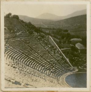 Photograph album containing: photographs of people, landscapes, Knossos and other archaeological sites in Crete; an itinerary of John Pendlebury’s travels in Crete in 1933 with Hilda Pendlebury and others; and loose photographs of sites in Corfu and photographs taken in the Savoy Hotel in Luxor, Egypt. Note that some photographs are missing: 1. With the caption “The West Court from the West, Excavations of 1930. North West Acropolis Houses and Koulouras”, c. 170mm x 230mm 2. With the caption “J.D.S.P. and Yanni Markakis”, c. 60mm x 85mm 3. 2 photographs from the last page, both approximately 75mm x 105mm