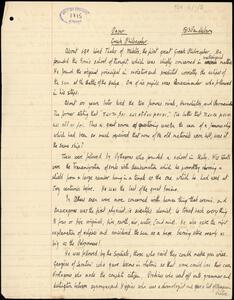 Handwritten prose/ notes of sayings by others. In Greek. Includes sayings by Manolaki [foreman of Knossos], Dawkins and Kapetanios Ioannes.