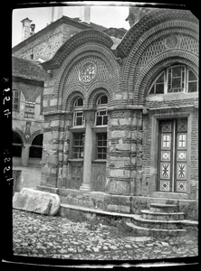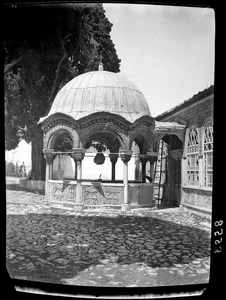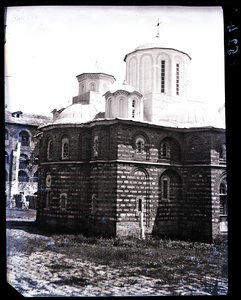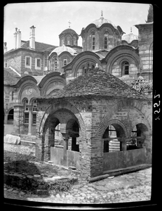 Part of a series of images taken by F.W. Hasluck during the course of his visit to Mount Athos in 1911. The original description in the SPHS register reads: "Athos: Laúra: chapel, in court".