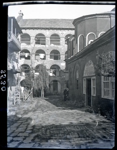 Part of a series of images taken by F.W. Hasluck during the course of his visit to Mount Athos in 1911. The original description in the SPHS register reads: "Athos: Xenóphou: view in court".