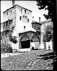Part of a series of images taken by F.W. Hasluck during the course of his visit to Mount Athos in 1911. The original description in the SPHS register reads: "Athos: Costamoúitou: entrance".