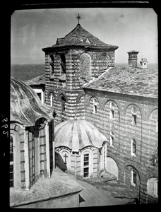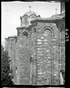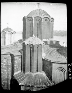 Part of a series of images taken by F.W. Hasluck during the course of his visit to Mount Athos in 1911. The original description in the SPHS register reads: "Athos: Docheraréiou: church SE apsidal & central domes".