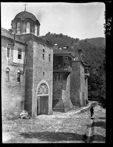 Part of a series of images taken by F.W. Hasluck during the course of his visit to Mount Athos in 1911. The original description in the SPHS register reads: "Athos: Pantokratoros: entrance".