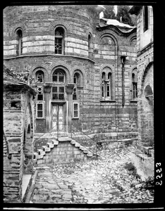 Part of a series of images taken by F.W. Hasluck during the course of his visit to Mount Athos in 1911. The original description in the SPHS register reads: "Athos: Xeroptámou: E. end of church".