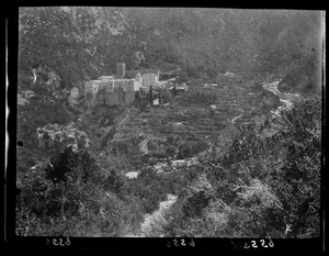 Part of a series of images taken by F.W. Hasluck during the course of his visit to Mount Athos in 1911. The original description in the SPHS register reads: "Athos: Roussikoú: general view".