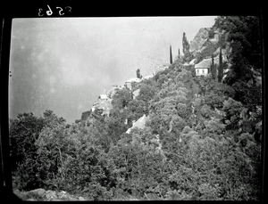 Part of a series of images taken by F.W. Hasluck during the course of his visit to Mount Athos in 1911. The original description in the SPHS register reads: "Athos: 1911. the mountain and Skiti of Bogoroditza".