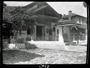 Part of a series of images taken by F.W. Hasluck during the course of his visit to Mount Athos in 1911. The original description in the SPHS register reads: "Athos: Chiliandari, caltolicon, W. end".