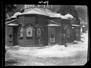 Part of a series of images taken by F.W. Hasluck during the course of his visit to Mount Athos in 1911. The original description in the SPHS register reads: "Athos: Laúra, catholicon S. chapel & fountain".
