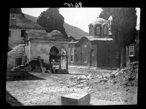 Part of a series of images taken by F.W. Hasluck during the course of his visit to Mount Athos in 1911. The original description in the SPHS register reads: "Athos: Nea Skiti".