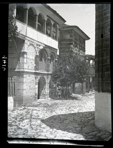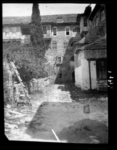 Part of a series of images taken by F.W. Hasluck during the course of his visit to Mount Athos in 1911. The original description in the SPHS register reads: "Athos: Laúra, old hospital building, now archoutarikia".