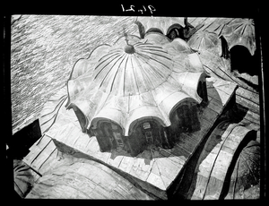 Part of a series of images taken by F.W. Hasluck during the course of his visit to Mount Athos in 1911. The original description in the SPHS register reads: "Athos: Dionysíou: main dome of catholicon from above".