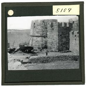 Part of a set of images taken by F.W. Hasluck in 1908 when he visited Aenos, Phocaea, Lemnos and Mytiline to documenty Frankish monuments. The original description in the SPHS register reads: "Mytilene: corner tower on sea."