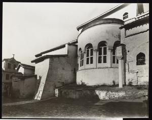 View of the east façade from the south-east. The photograph is stamped at the back:'Copyright Robert W.S. Weir & The Byzantine Research & Publication Fund'. It is initialed 'S.H.B.' in the upper right-hand corner.Further annotation in pencil survives at the back.