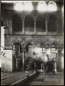 External view fo the gallery over narthex looking west. The photograph is stamped at the back:'Copyright R.W.S.Weir & The Byzantine Research & Publication Fund'. It is initialed 'S.H.B' in pencil in the upper right-hand corner. Further annotation in pencil survives. Taken after the fire on Aug. 23, 1890
