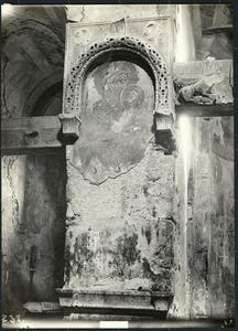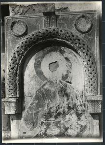 Fresco icon (the Virgin with Child) and frame (left pilar of the iconostasis). The photograph is annotated in pencil at the back.